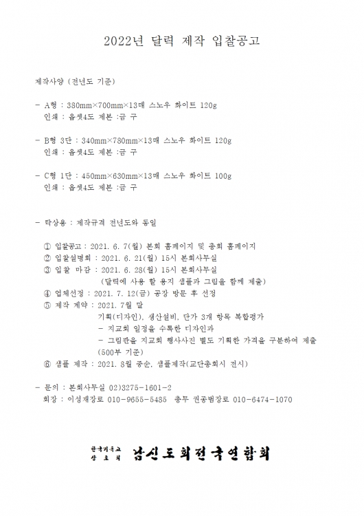 2022년 달력 제작 입찰공고