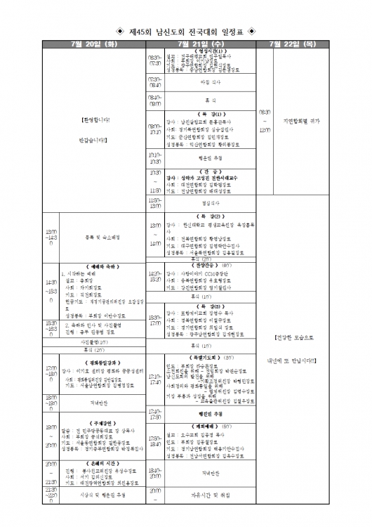 제45회 남신도회전국대회 안내